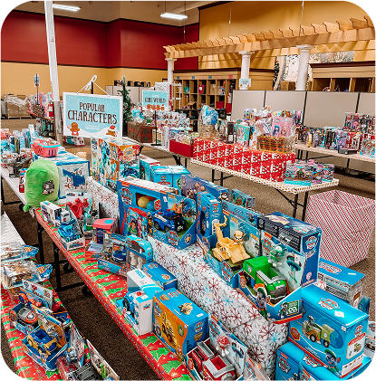 Each family is given a budget based on their family size. They “shop” in the Cottage among age-appropriate items that are given a point value that is representative of a dollar value of the item. This way, they not only get to choose the gifts they know their children will love, but they are learning to budget and understand the value of what they are receiving.